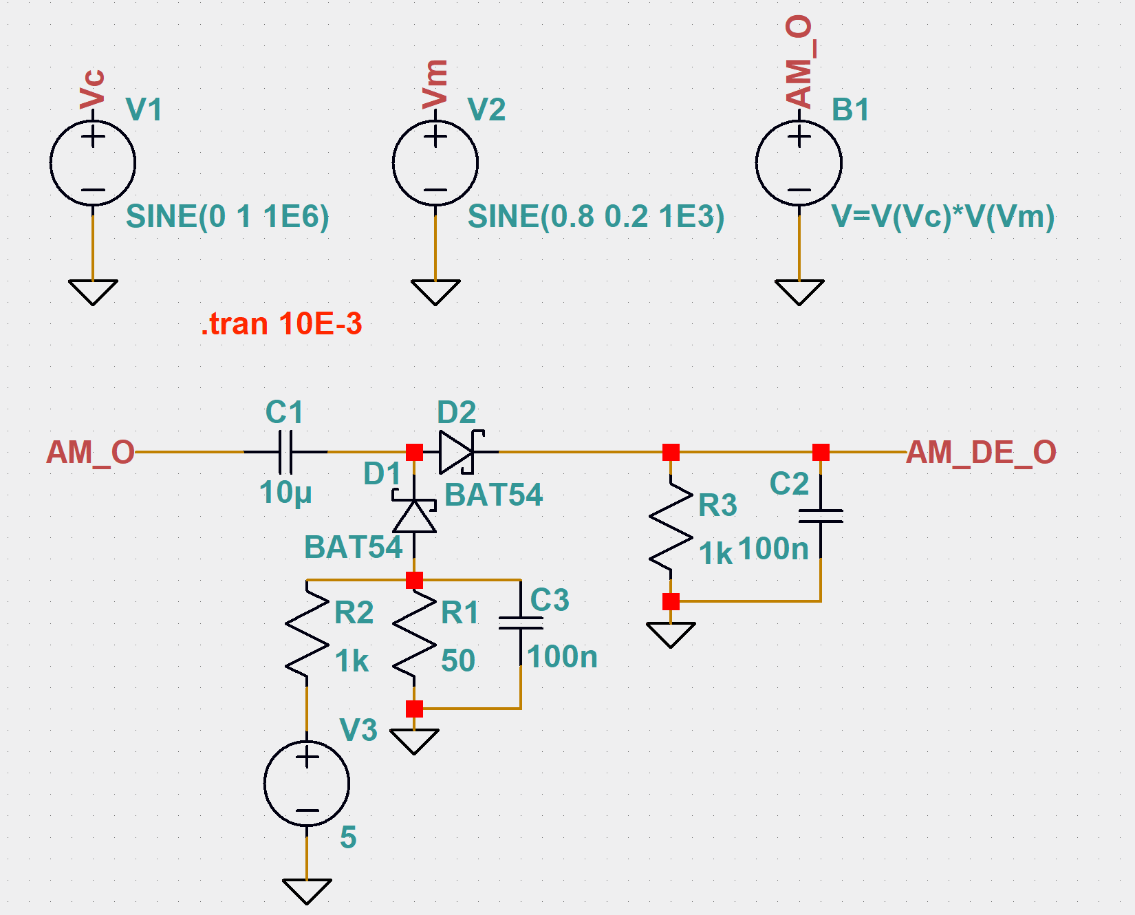 使用如下图所示的二极管检波电路可实现对AM信号的检波: