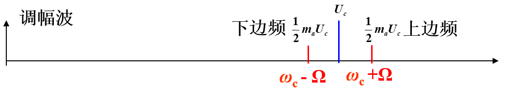 $$ \cos(\omega_c t)+\frac{m_a}{2}\cos((\omega_c+\omega_m)t)+\frac{m_a}{2}\cos((\omega_c-\omega_m)t) $$